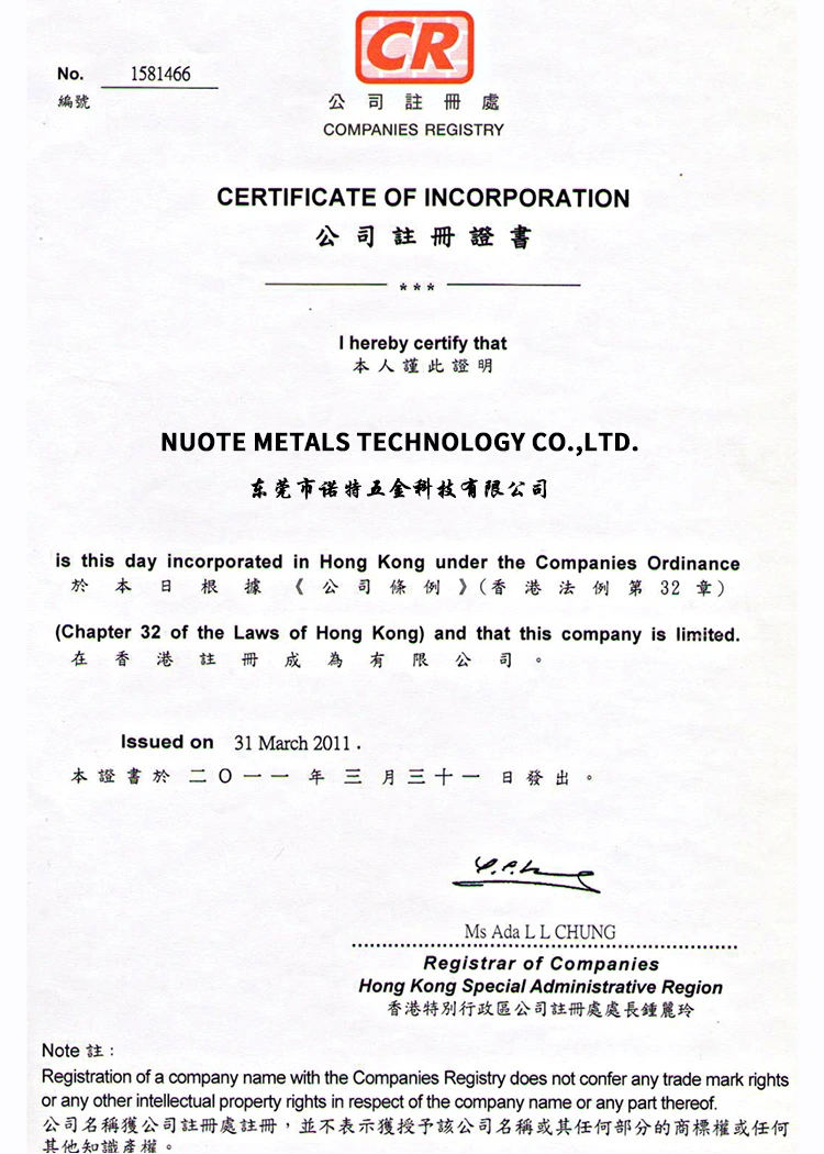 우리는 중국 동관 출신의 Nuote Metals입니다.