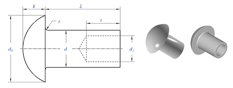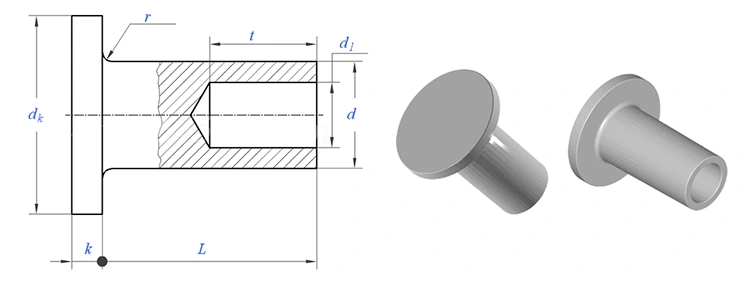 반중공 리벳의 리벳팅 공정은 기계적인 힘에 의존하여 생크의 끝 부분을 확장 및 변형시켜 연결된 부품을 잠그는 "버섯 머리" 구조를 형성합니다. 제조 공정에는 일반적으로 냉간 압조, 드릴링 및 절단이 포함됩니다. 사용되는 일반적인 재료에는 연강, 알루미늄 합금 또는 스테인리스강이 포함됩니다. 표면 처리에는 내식성을 높이기 위해 아연 도금, 니켈 도금 및 패시베이션이 포함됩니다. 예를 들어, 흰색 아연 코팅이 된 반중공 리벳은 습한 환경에서 6개월 이상 녹이 슬지 않는 상태를 유지할 수 있으며, 부동태화 처리는 이 기간을 1년까지 연장할 수 있습니다.