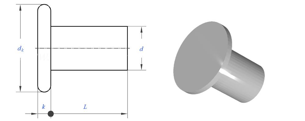 A 평평한 머리 단단한 리벳 원통형 생크와 평평하고 넓은 머리가있는 리벳입니다.