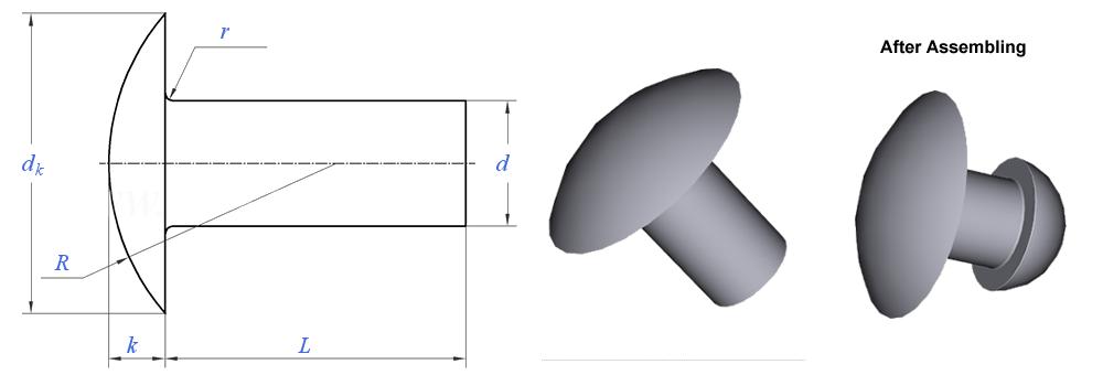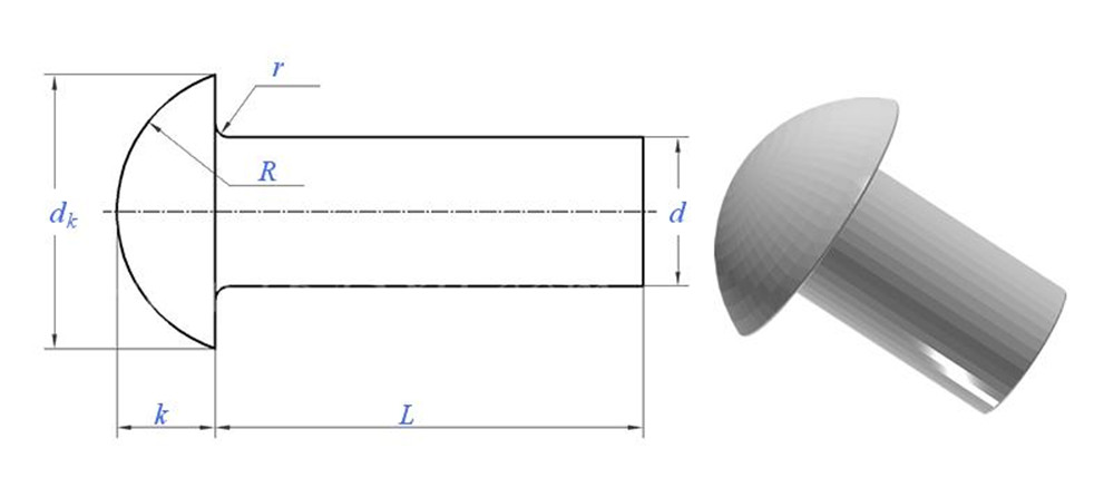 A 둥근 머리 단단한 리벳 둥근 또는 돔 모양의 머리와 단단한 생크가있는 리벳 유형입니다.