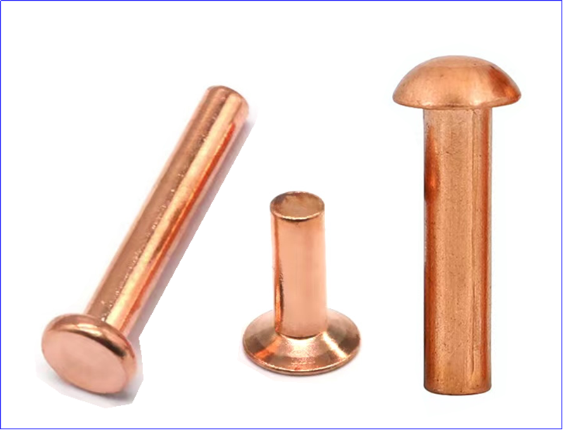 구리:구리 리벳 우수한 전기 및 열전도율로 유명합니다. 전기 및 전자 애플리케이션뿐만 아니라 배관 및 기타 열 성능이 필요한 기타 응용 프로그램에 사용할 수 있습니다.