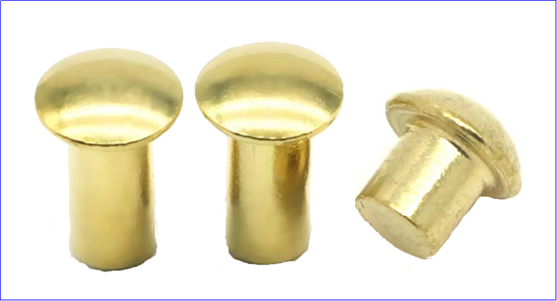 놋쇠:황동 리벳 구리의 전기 전도성과 부식 저항을 매력적인 외관과 결합하십시오. 그들은 종종 보석류, 가죽 제품 및 장식적인 금속 공사와 같은 장식 응용 프로그램에 사용됩니다.